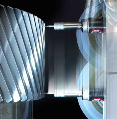 振れがある歯車、干渉部を持つワークは、最小砥石用のスピンドル、および砥石アダプタを使って研削ることができます。機械によっては、2つの研削スピンドルを使用することもできます。